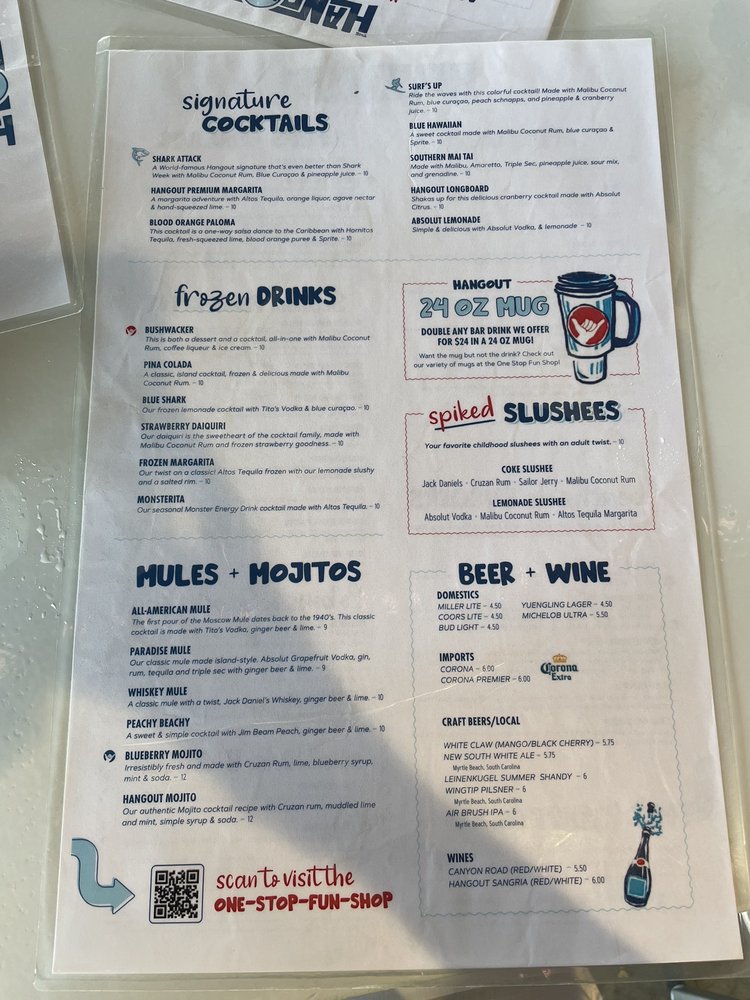 Located in Myrtle Beach, SC, The Hangout is a vibrant bar and eatery offering a diverse menu of burgers, seafood, and salads. The establishment boasts a range of amenities including takeout, delivery, outdoor seating, live music, and a full bar. The Hangout's energetic atmosphere is perfect for families and groups looking for a fun dining experience. Reviews highlight the delicious food options such as the Hang 10 burger, fried calamari, and the Hangout Cobb salad. Customers also appreciate the interactive activities, like table dancing and a slide from the second-floor dining area. The Hangout prides itself on providing a memorable experience for all guests, making it a must-visit destination for those looking for good food and entertainment.